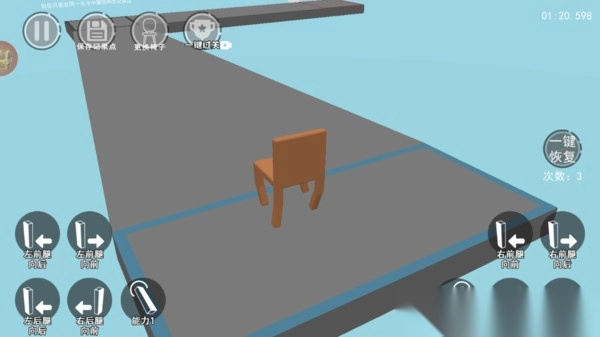 玩家在游戏里要分别操控椅子的四条腿来完成移动。每条腿都能独立操作,借助左右移动来把控椅子的行进方向。玩家得灵活调整每条腿的位置,让椅子可以平稳地向前奔跑。
