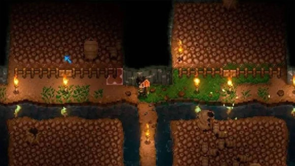 5、玩家需要在这个洞穴里生存,打怪和收集资源的操作并不复杂,不过这里有着多样的环境,玩家可以建造出具有自身风格的据点。
