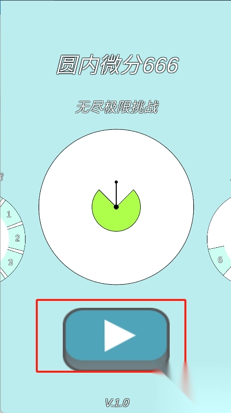 1、打开圆内微分666游戏,点击开始按钮开启挑战。游戏界面设计简约,中间有一片圆形区域,正等待着数学难题的考验。