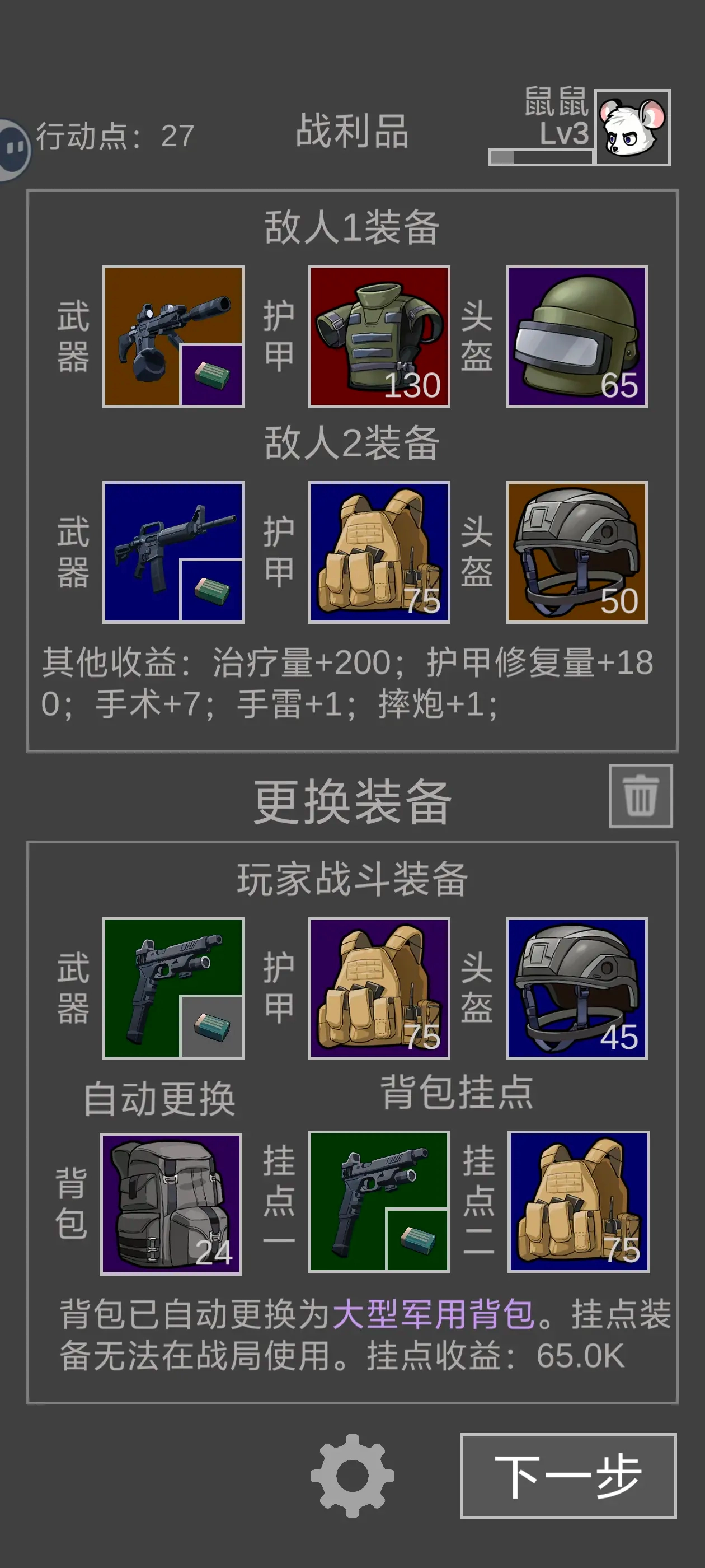 3、大家可以通过升级装备或者更换装备的方式来提高自身的战斗力,让自己变得更强大。