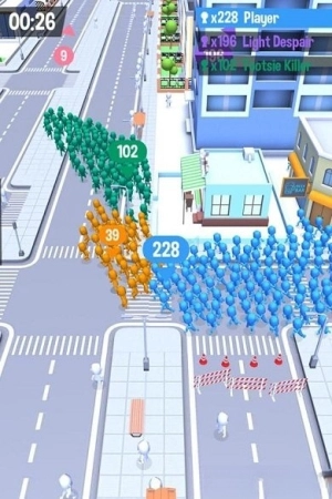 拥挤城市最新版本带来了魔性十足的群体对抗体验,你可以带领自己的队伍在街头不断发展壮大。只需简单滑动屏幕,就能操控人群移动,吞并那些弱小的队伍来扩张自己的势力。明快的色彩搭配简约的画风,营造出轻松解压的游戏氛围。从最初的几人小队发展到百人军团,队伍规模的增长会带来强烈的视觉冲击。限时竞技模式增添了紧张感,让你全力争夺城市霸主的地位。群体移动时的特效呈现,能让你释放压力,收获畅快的游戏体验。
