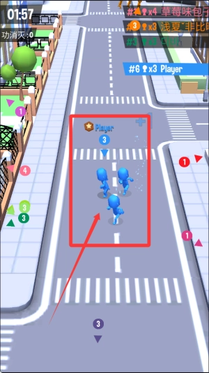 1、基础玩法为滑动屏幕操控己方队伍移动,在行进途中吞噬行人和其他规模较小的队伍,以此逐步扩大自身的势力范围。