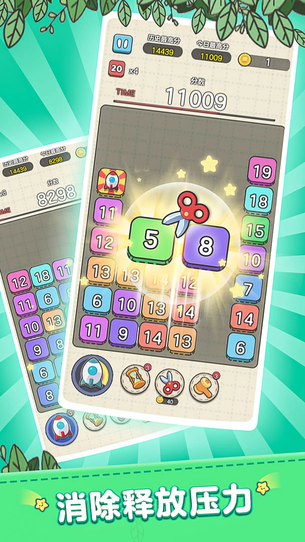 利用多个闲置的游戏道具开启数字消除体验,解锁更多精彩的玩法模式。
