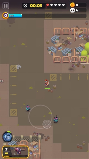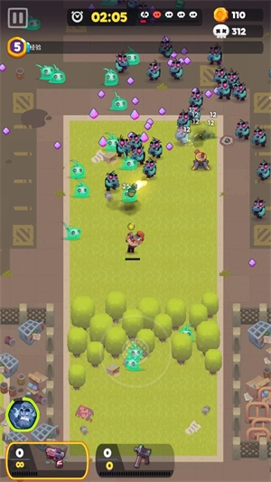 2、进入关卡后,角色会自动发射子弹攻击敌人,消灭丧尸即可获取经验。