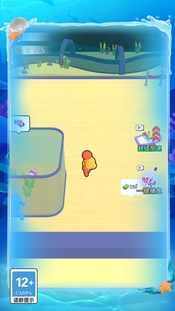 1. 玩家能够在游戏界面里挑选各类选项,开展店铺管理、鱼缸搭建、海鱼捕捉等操作。