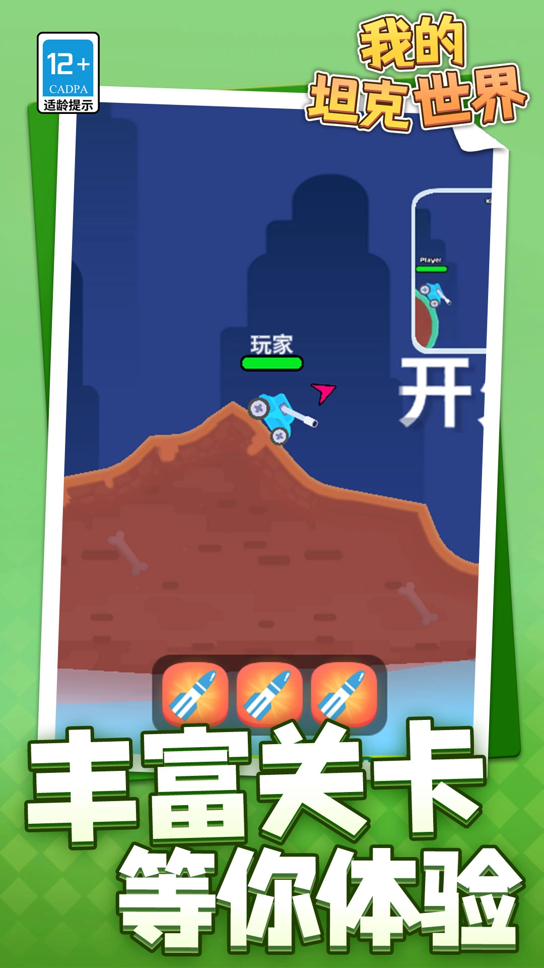 1、简单易上手的操作搭配充满创意的玩法,通过左摇杆控制坦克移动,点击屏幕即可发射武器,全年龄段玩家都能轻松体验。