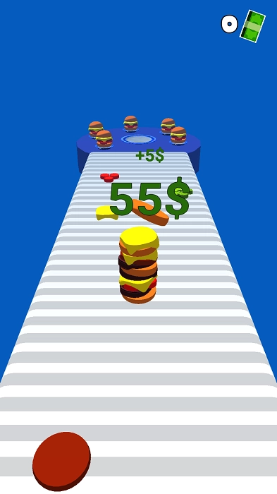 热衷于汉堡的玩家将开启一场全新的跑酷冒险。在规定时间内全力冲刺赛道,努力收集更多美味的汉堡食材。汉堡的配料越丰富,你的得分就会越高,所能获得的奖励也会更加丰厚。简洁的操作中藏着无穷的乐趣,赶紧来挑战更高分数,尽情享受边奔跑边收集美食的独特畅快体验吧。
