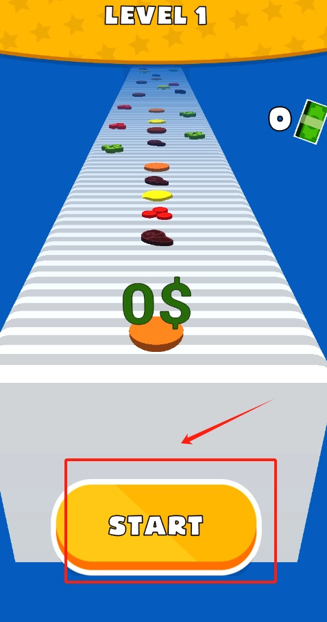 1、看到黄色的LEVEL 1标识和被红色框起来的START按钮,点击这个按钮就可以开启第一关游戏了。