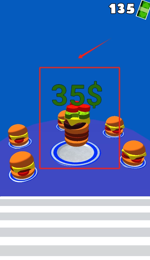 2、看到标着35$的汉堡和右上角的135数字,点击汉堡图标就可以用35美元买下它啦。