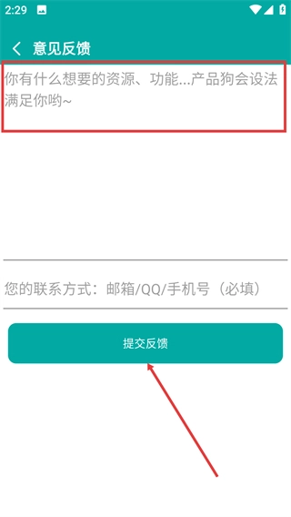 4、在意见反馈页面填写您的需求内容和联系方式,点击【提交反馈】按钮,即可将建议提交给平台,帮助平台完善产品功能与资源。