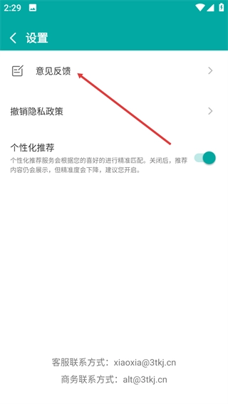 2、进入个人中心后点击【设置】,即可进入设置界面。此界面设有意见反馈、隐私政策等配置选项,还能对功能偏好进行调整。