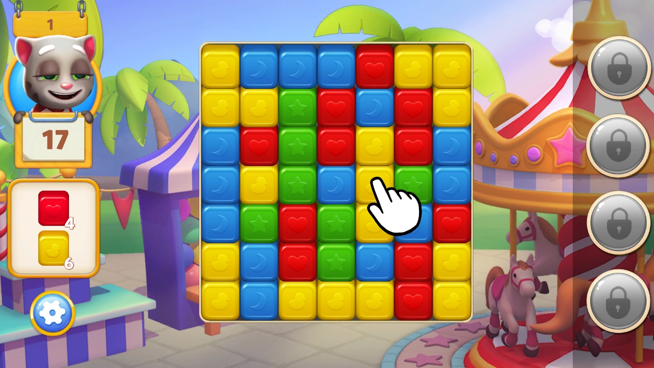 汤姆猫家族推出的休闲益智游戏《汤姆猫消消乐园》最新版,玩家可通过完成消除关卡获取资源,逐步解锁各类设施与装饰,自由装扮专属乐园,助力汤姆猫重建这座荒废的游乐天地。快来加入游戏,和汤姆猫一起在轻松欢乐的氛围中挑战关卡,将废弃乐园重新打造成属于你们的梦想天地吧。