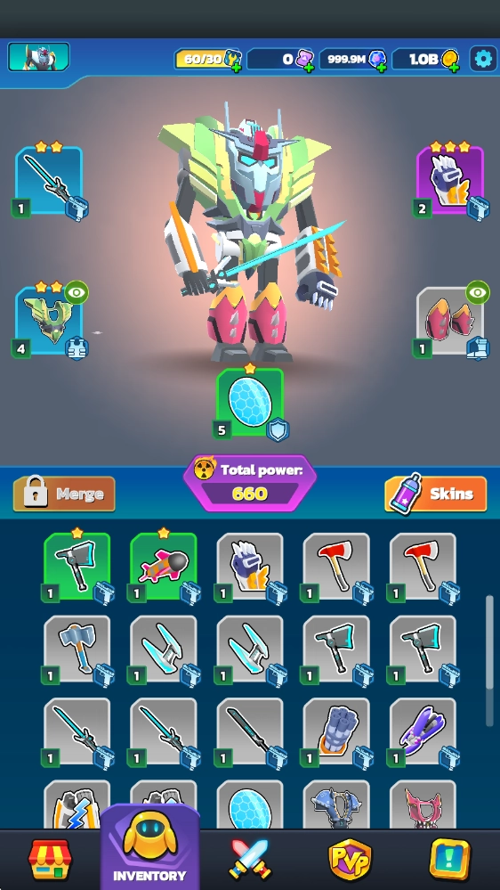 6、在装备界面,我们还能自由搭配各类武器,以此强化自己的机器人。