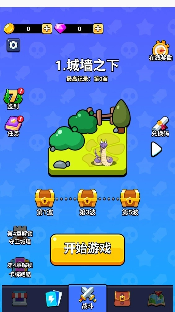 1. 先在本站下载安装包,接着启动游戏。该游戏采用塔防类玩法,每一个关卡都由多波敌人构成。