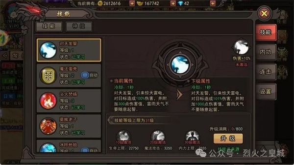 在延续经典内核的同时,《烈火皇城》勇于突破创新,融入了不少别具一格的设定。神翼魔镜与绝世神翼的设计,使玩家在寻觅顶级装备的征程中始终怀揣挑战欲与期待感。传世之路的系列玩法,像竞技场对决、石墓烧猪副本、激情挖矿活动、通天塔闯关等,为玩家带来了多元的游戏趣味与实力进阶渠道。神炉系统作为资源调控的关键,让玩家在科学分配资源时体会到成长的成就感。至于内功系统的植入,则进一步为游戏增添了策略维度与内容深度。