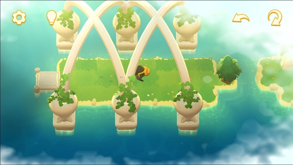 但这款作品为简单的机制注入了丰富的互动性,高低错落的树木与石头能衍生出多种多样的组合方式。这些内容完全通过关卡本身来传递,没有任何文字教学,从基础的移动操作开始,循序渐进地引导玩家理解物体间的互动逻辑。同时,岛屿的规模不大,解谜空间被限制在合理范围内,无论是休闲玩家还是硬核解谜爱好者,都能顺利通关主线——甚至可以说,整个主线流程本身就是一系列教学关卡。