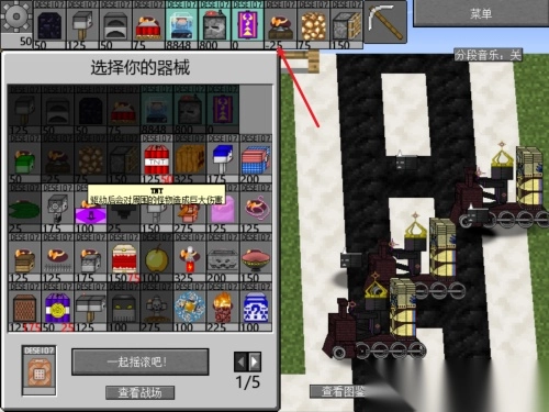 4. 当僵尸出现后,就可以制造攻击型器械类。