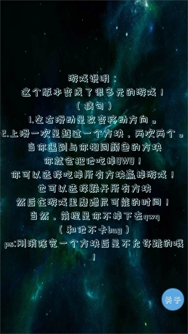 版本迎来重磅更新啦!这次更新后它摇身一变成了消除游戏哦!玩法很简单,就是不断消除相同的方块,直到把最后一个方块也彻底消除掉就行啦!(能不能顺利通关可就全看运气咯QWQ)