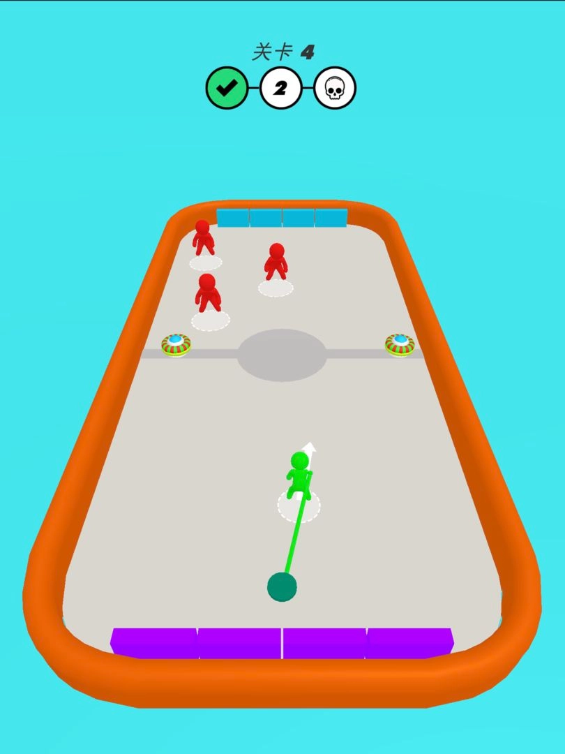 玩家在游戏中要操控一颗能够弹射的球,随着关卡逐步提升,对面的对手数量会日益增多,你得设法把对方全部淘汰出局。