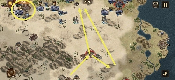 黄线为支援军、补给重坦、重炮组成的新主力军。