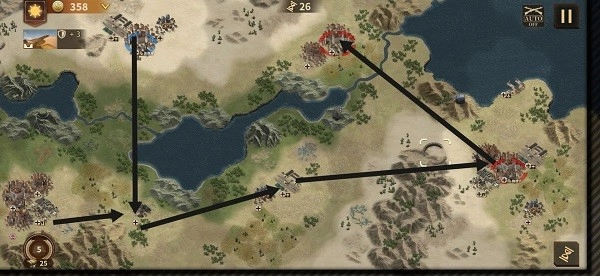 这关主体思路:分兵、猛攻、避其防线