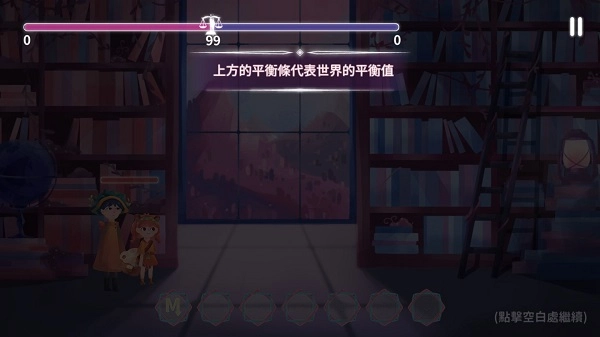 上方的平衡条代表着世界的平衡值,这个数值会随时间慢慢减少,一旦数值降到零,就只能重新开始游戏了。