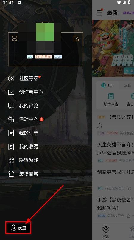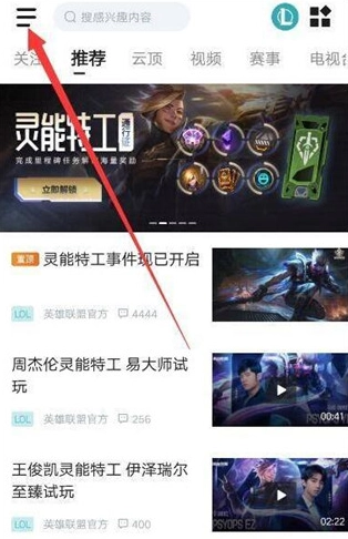 1、首先你需要在本站安装掌上英雄联盟,打开软件后,点击左上角的三条横线图标。