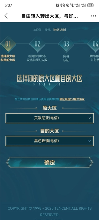 2、确认用户协议后,选择需要转的区以及目的大区