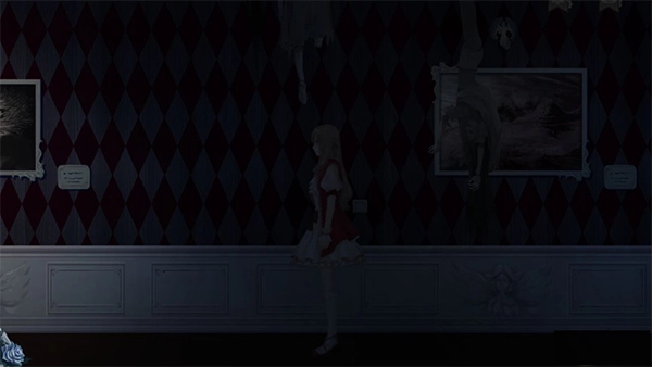 想凑完成度的朋友,建议多在走廊里来回走动(实在不知道怎么形容这种反复的状态,大概就是循环往复的感觉吧ಥ_ಥ)——反正就是先往前走,沿途看看画和牌子(当然前提是你特别闲,毕竟游戏会记录时间);等走回来之后,你会发现有些牌子上的字变了(第二个牌子是永远不会变的)。大概等女主意识到这是循环走廊后,再走两趟,牌子的字就会更新,记得要点击牌子哦。不过我不确定这个操作算不算在完成度里就是了。