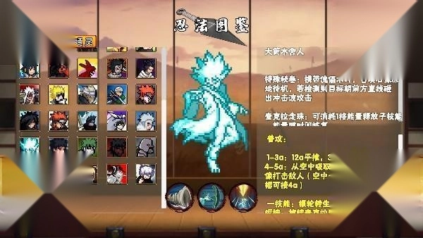 游戏里包含众多火影角色,能为玩家呈现这些人物的图鉴信息 1、秽土柱间