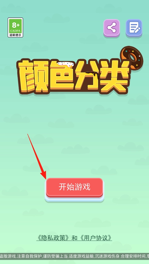 1、点击“开始游戏”按钮,即可进入颜色分类的游戏世界,进入后请准备好依据颜色对物品进行分类,开启这场有趣的分类挑战。