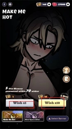 1、进入游戏后,能看到抽卡界面和恋与深空的抽卡界面基本一样,这里设置的是70抽保底出五星。