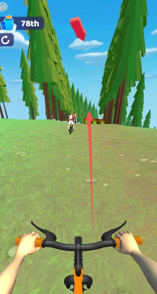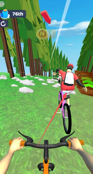 1、在赛道上操控自行车,借助长按加速、灵活转向等操作,全力在比赛中超越对手,以争取更靠前的排名。