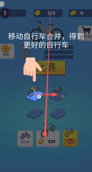 3、把等级相同的自行车移到一起合成,就能得到等级更高的自行车。