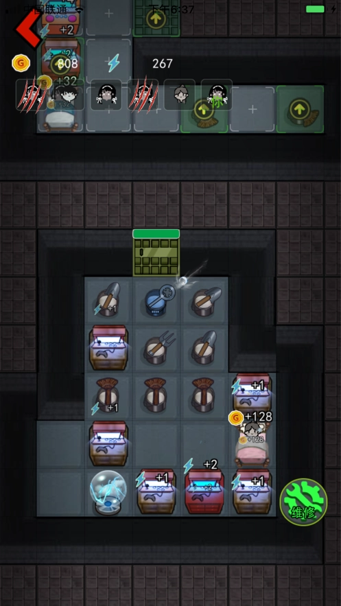 2、通过睡眠获取金币,持续升级并加固防线,借助装备来提高自身的生存几率。