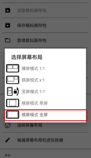 2.按顺序点击【菜单】→【选择屏幕布局】→【横屏模式全屏】就可以了