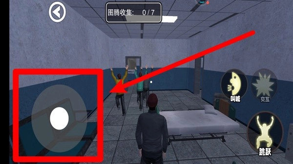 1.画面呈现出角色在病房场景中奔跑的情景,玩家能够借助左下角的摇杆来操控方向,这种直观的操作方式使得逃脱过程更具紧张刺激感。