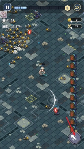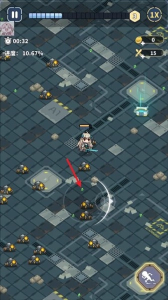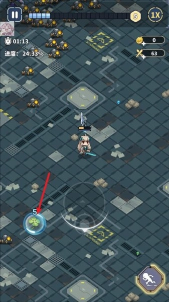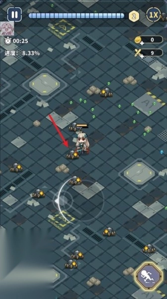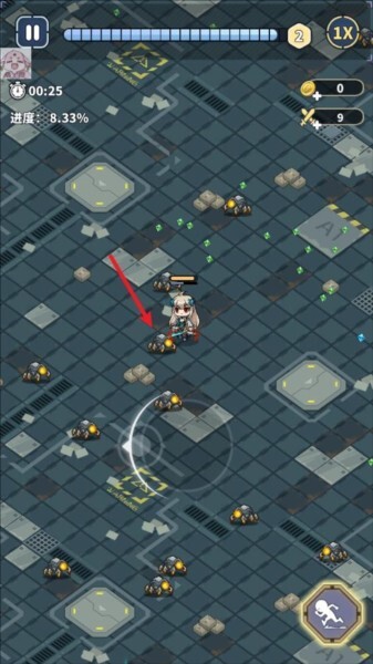 1、进入滋滋先锋队游戏后,我们可以通过拖动屏幕来操控角色移动,当怪物靠近时角色会自动发起攻击。