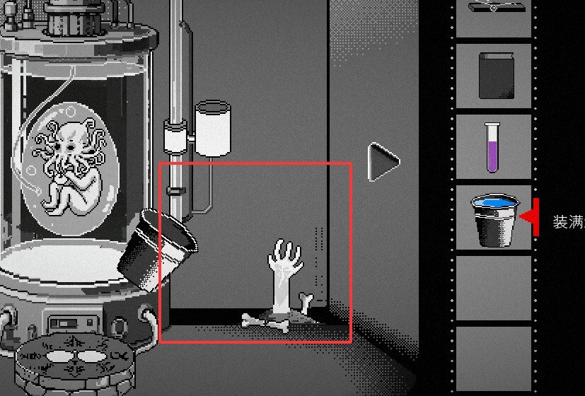 24,在左侧放置老鼠的心脏,右侧摆放人偶,以此唤醒克苏鲁的幼崽。