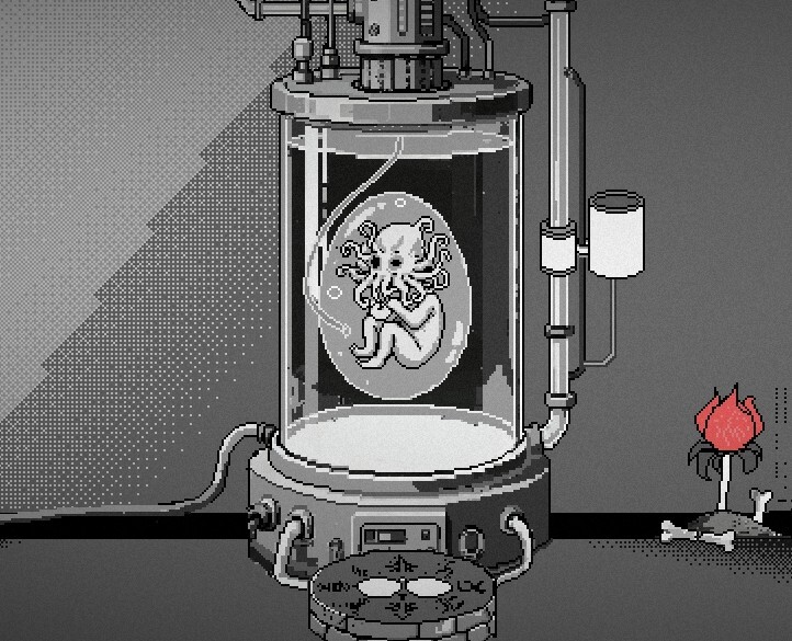 3、直面不可名状之物:游戏中融入了大量克苏鲁神话元素。你会遭遇造型怪诞的雕像,以及那些仿佛不属于这个世界的“幼崽”,在无声的氛围里感受它们带来的恐惧。