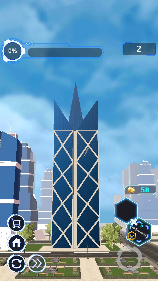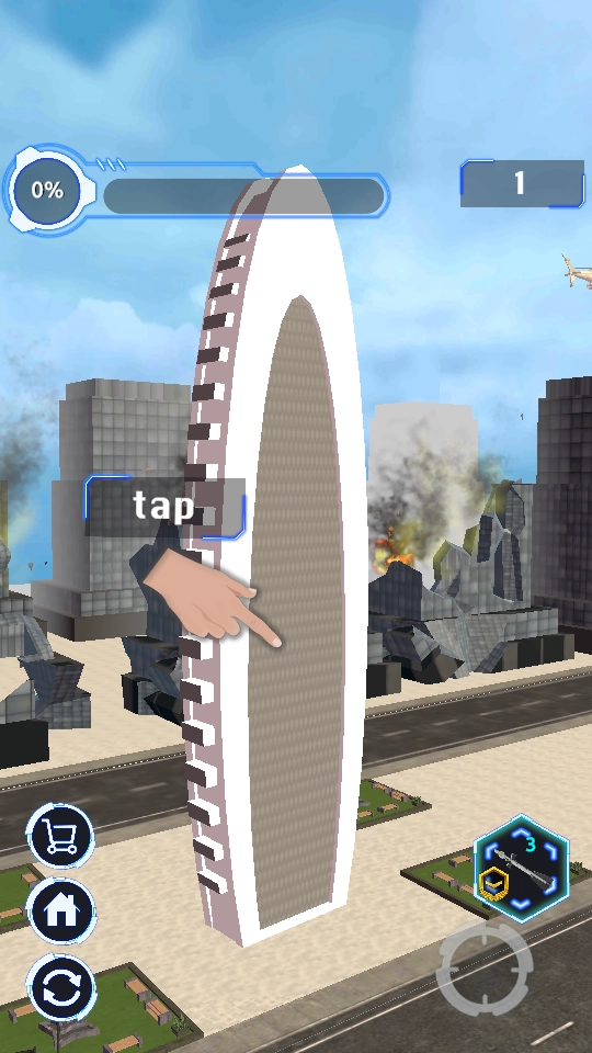 玩家需要系统性地清除场景中所有假冒建筑,通过精准投放炸弹完成爆破任务。成功将整栋大楼化为废墟时,将获得满满的成就感和视觉满足。