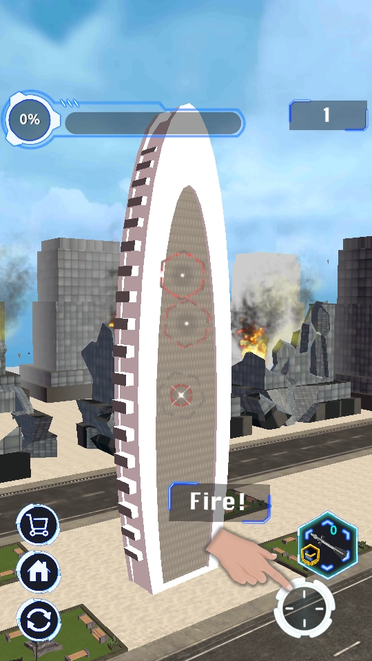 3、选中目标后点击“fire”按钮,即可发射武器对建筑实施摧毁。