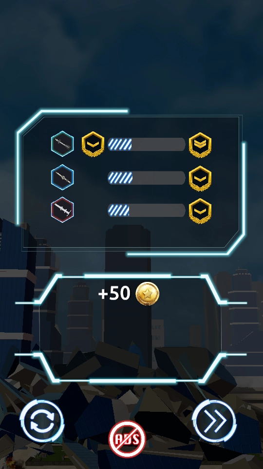 4、当建筑的摧毁进度满足过关条件时即可通关,系统会依据摧毁进度给出星级评定,并发放金币奖励与武器经验。