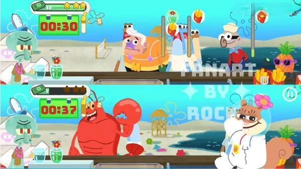 1、游戏里会有许多你熟悉的角色一一亮相,不管是对工作感到厌烦的章鱼哥,还是模样可爱的海绵宝宝,都会在其中出现。