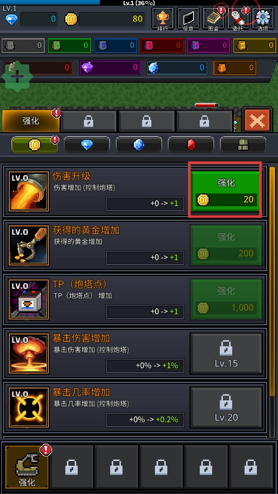 2、强化伤害升级属性,提升炮塔伤害,增强战斗能力,从而更顺利地消灭敌人。