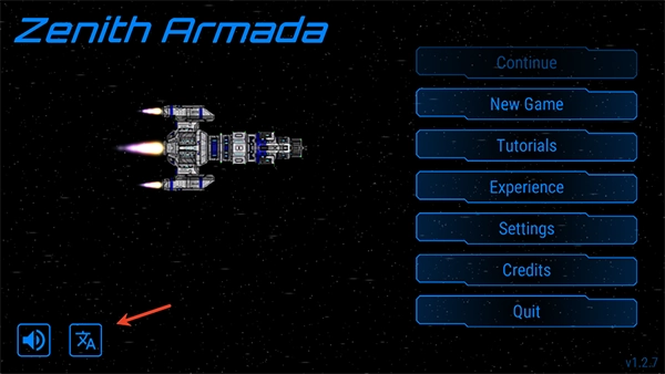 1、进入天际舰队最新版游戏后,我们点击左下角的语言选项。