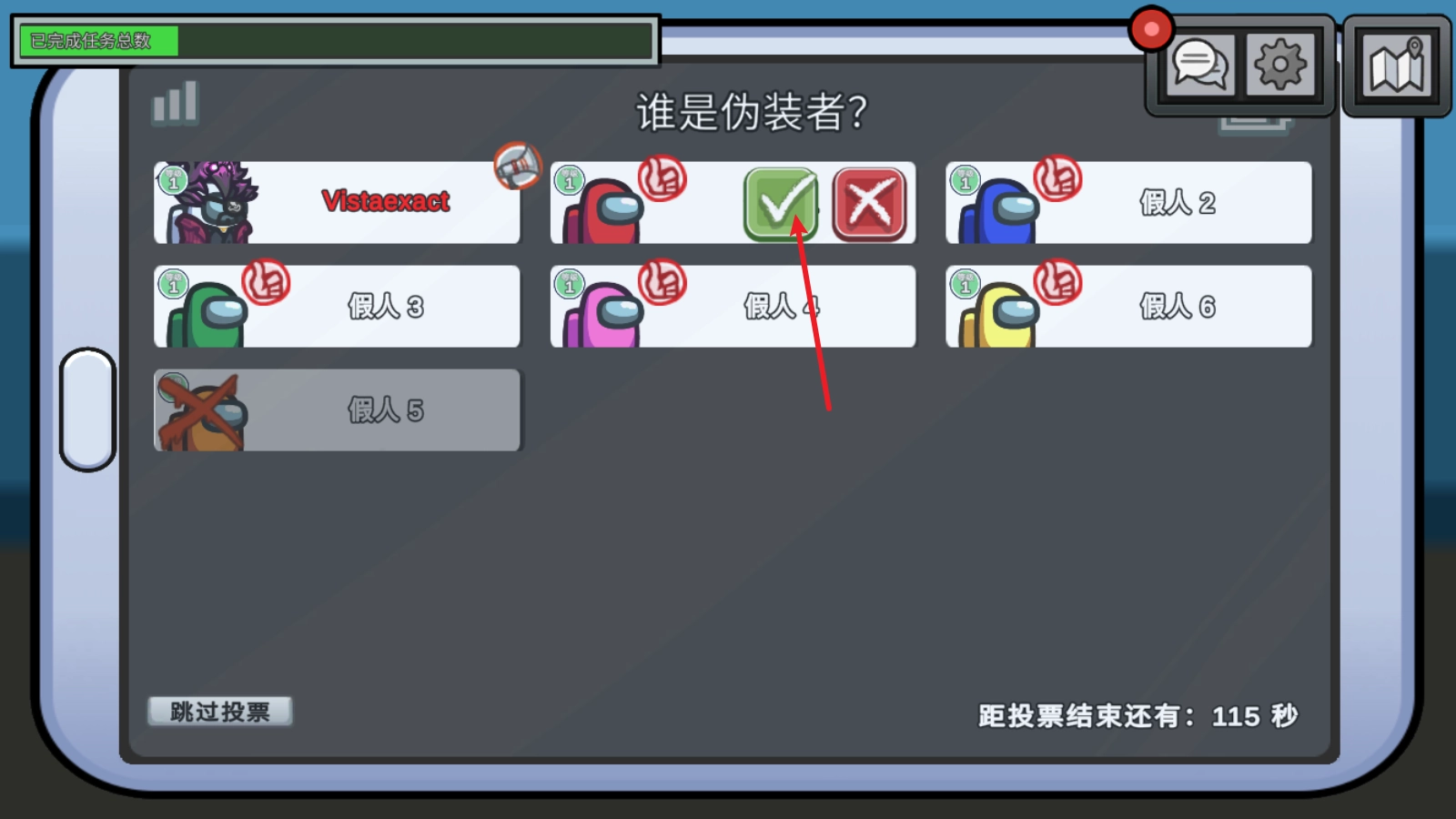 6、触发报警后便会开启会议环节,参与者通过依次发言来甄别出伪装者,并投票将其驱逐出局。