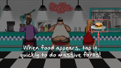 2、随后,观察并点击屏幕上的食物图标,以此来触发角色放屁。