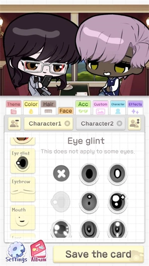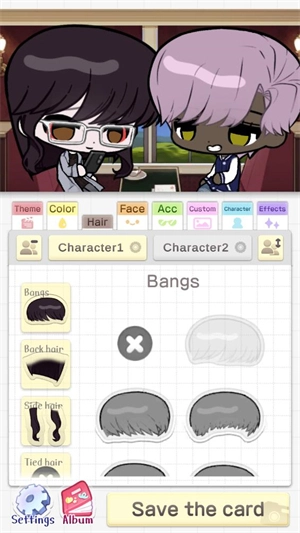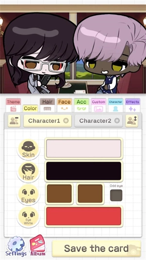 选好主题后,点击character1和character2即可为这两个角色更换不同的装饰。