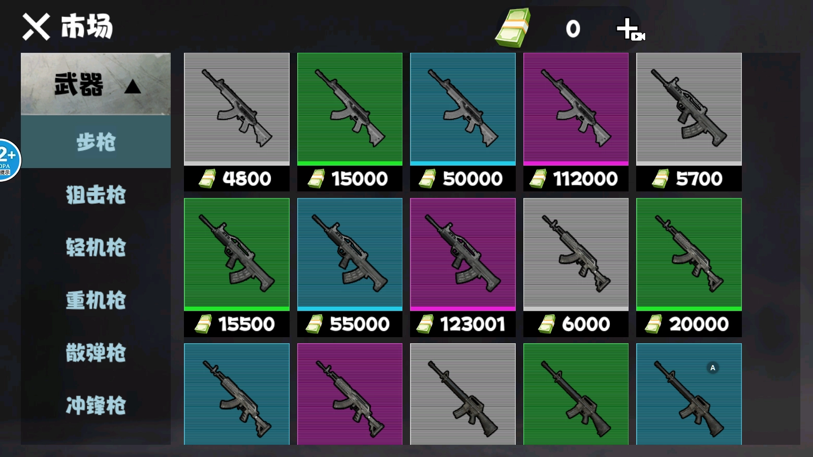 在主界面点击右下角的“市场”选项,即可在此处选购各类武器,不过需要你拥有充足的资金作为前提。